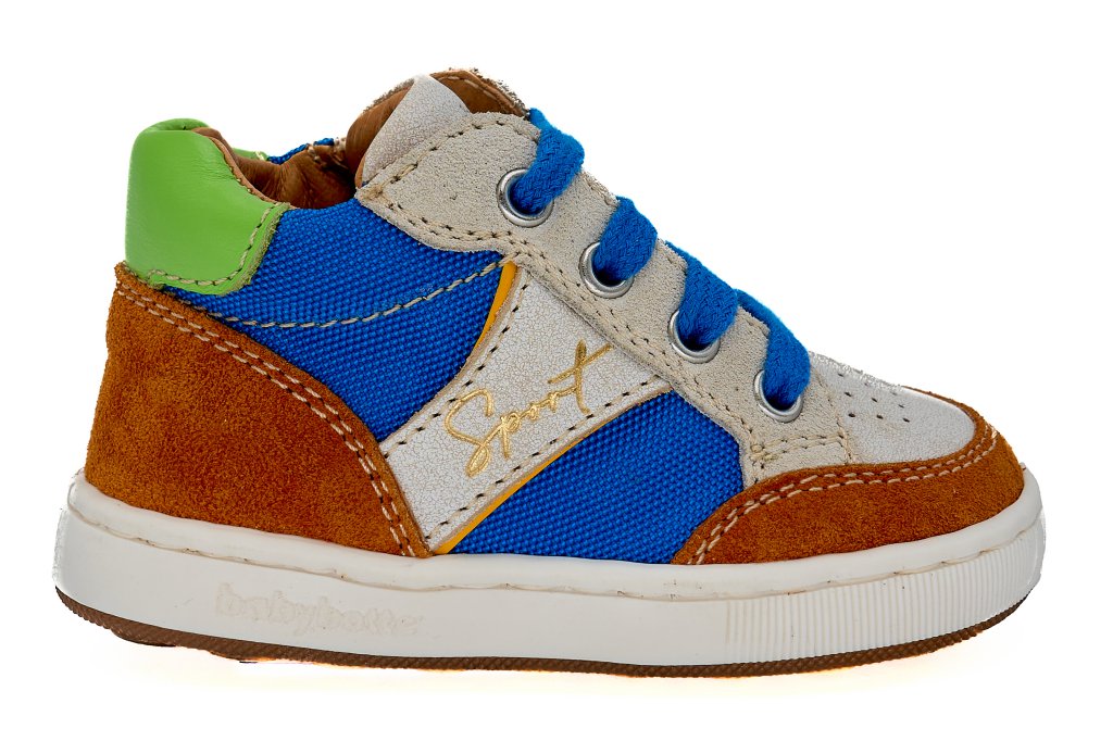 Chaussure petit garçon debout à lacets. Tige en velour. Doublure en cuir et semelle en caoutchouc.
