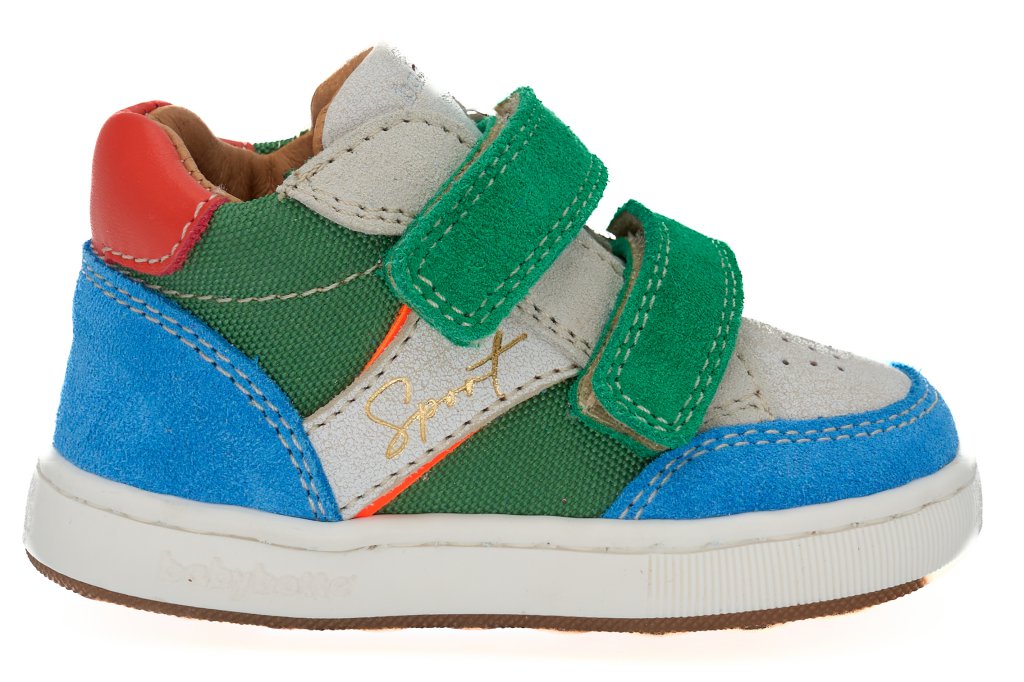 Chaussure petit garçon debout à lacets. Tige en velour. Doublure en cuir et semelle en caoutchouc.