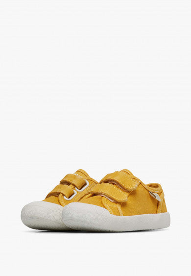 Basket en toile délavée avec fermeture double scratch, doublure en tissu et semelle en caoutchouc avec bout renforcé.