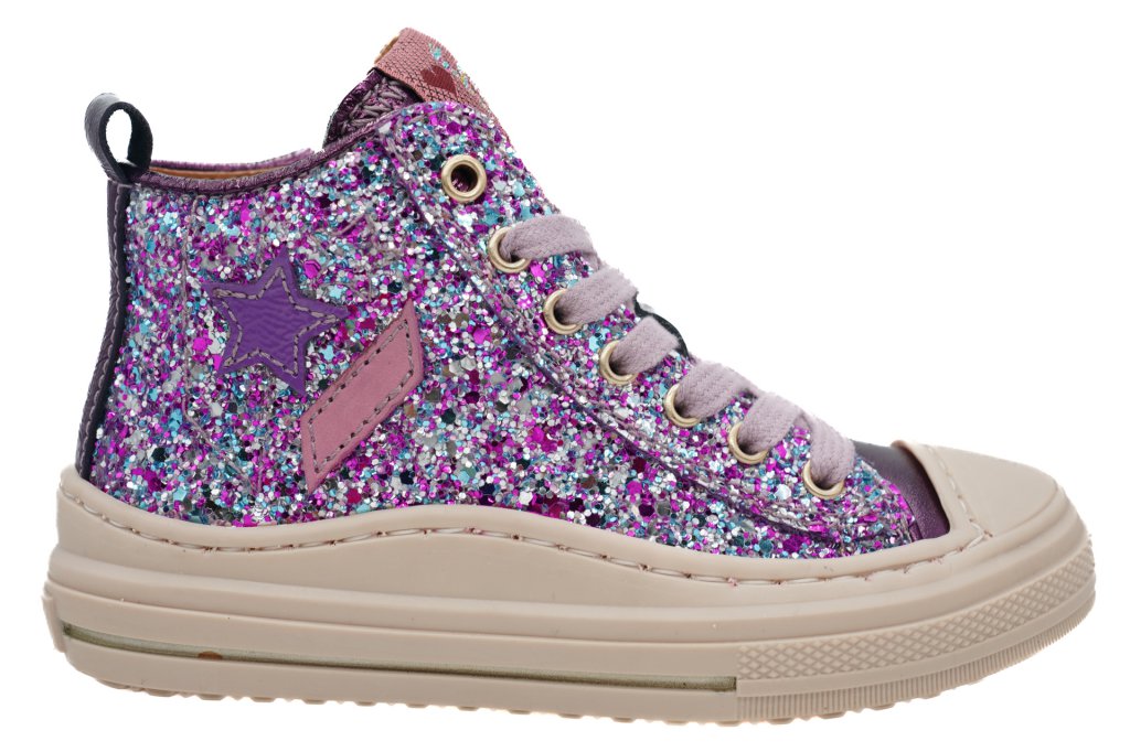 chaussure petite fille à lacets et fermeture éclaire. Tige en cuir pailletté rose. Bout en caoutchouc . Doublure en cuir et semelle en caoutchouc.