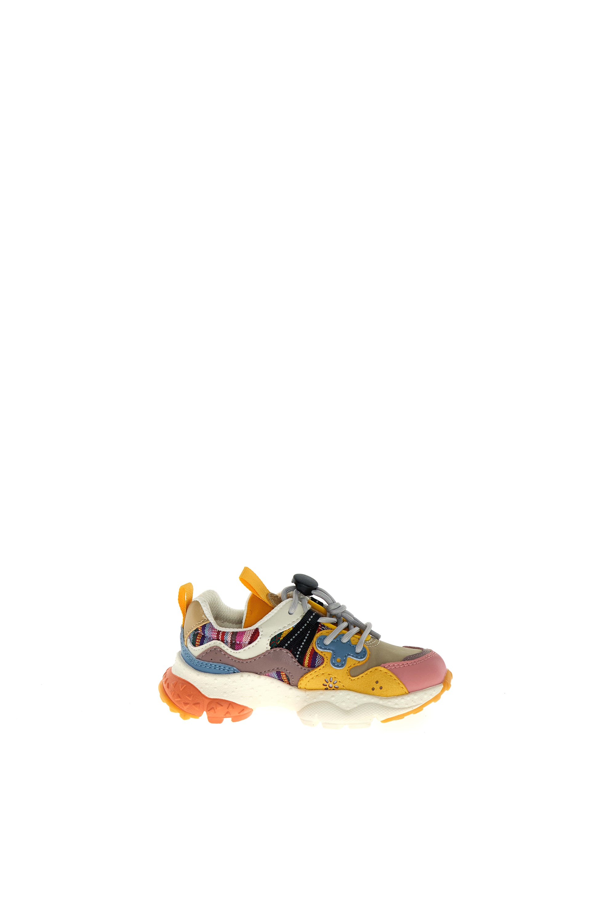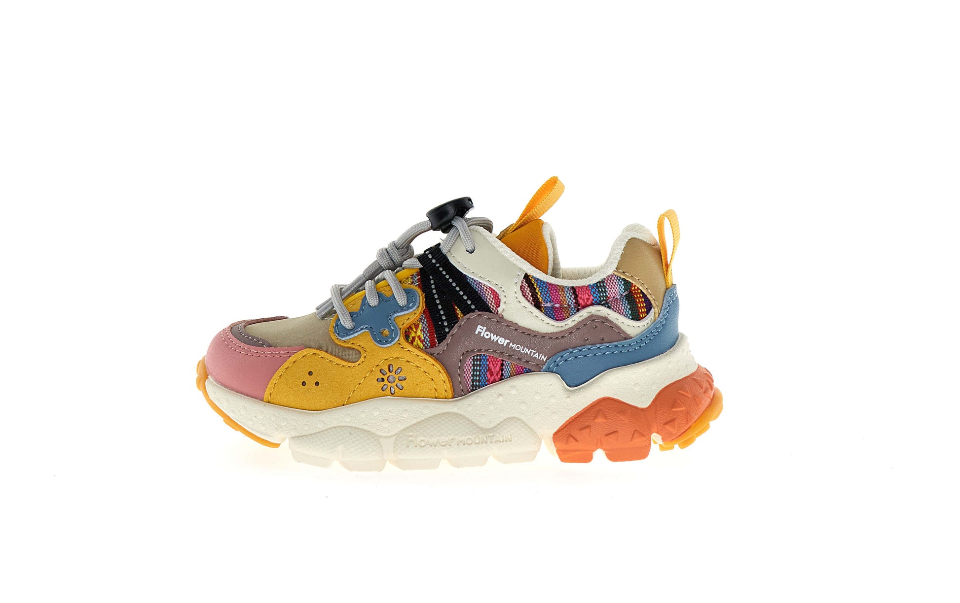 Baskets réalisée en collaboration avec Flower Mountain. La tige est en tissu technique avec des détails de forme en éco-cuir dans des tons contrastés. Fermeture par lacets et arrêt rapide, semelle en caoutchouc avec bande de roulement bicolore.
